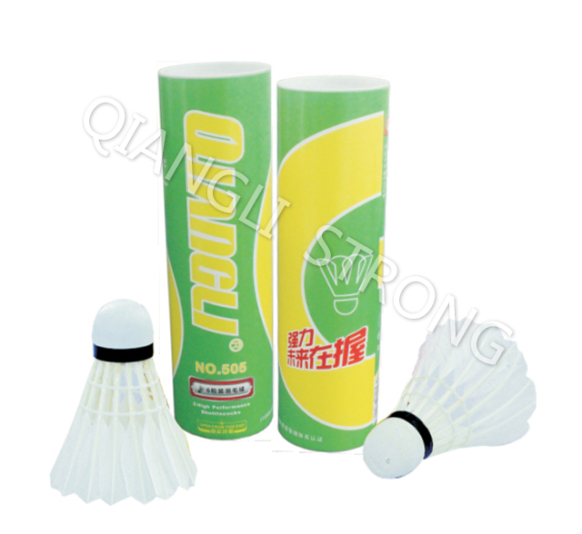 货号:ITEM NO.505品名:筒装羽毛球ITEM:feather shuttlecocks材质:鸭毛 + 发泡material:duck feather + foam head备注:6粒/筒 50筒/箱remark:6pcs/tube.50tubes/ctn