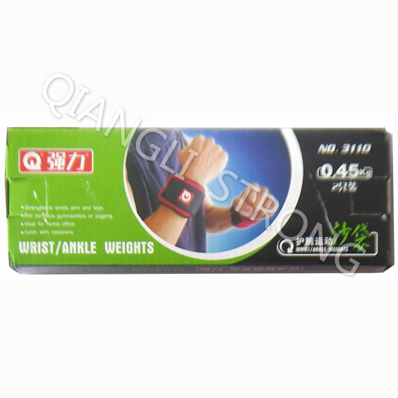 货号:ITEM NO.3110品名:护腕运动沙袋(2只X0.45公斤)ITEM:sports sandbag for wrist材质:100%铁砂+N布+红色SBRMaterial:100%iron sand+nylon+SBR重量weight:0.45kgX2pcs备注:彩盒2只装18盒/箱remark:2pcs with color box,18pairs/ctn