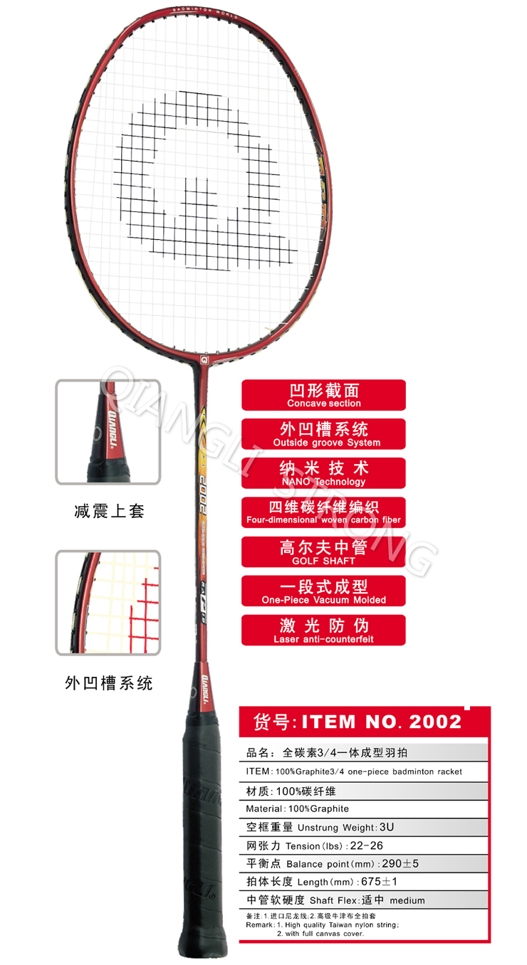 SZ 2002全碳素3/4一体成型羽拍